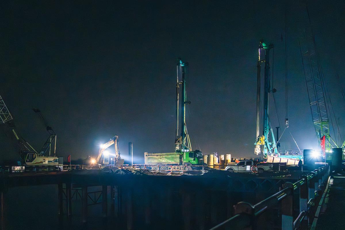 寒冷的冬夜,呼南公铁施工现场,凛冽的寒风阻挡不了工人们工作,精神可嘉。