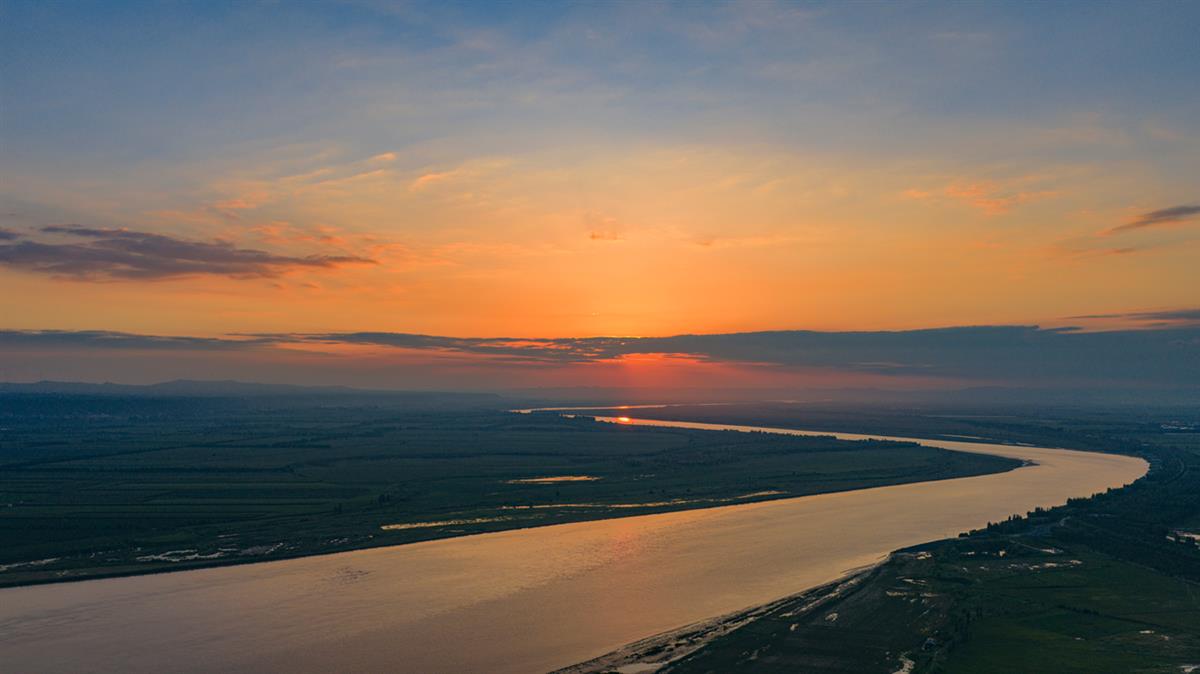 落日映长河,晚霞照千里。孟州市黄河湿地景色宜人。