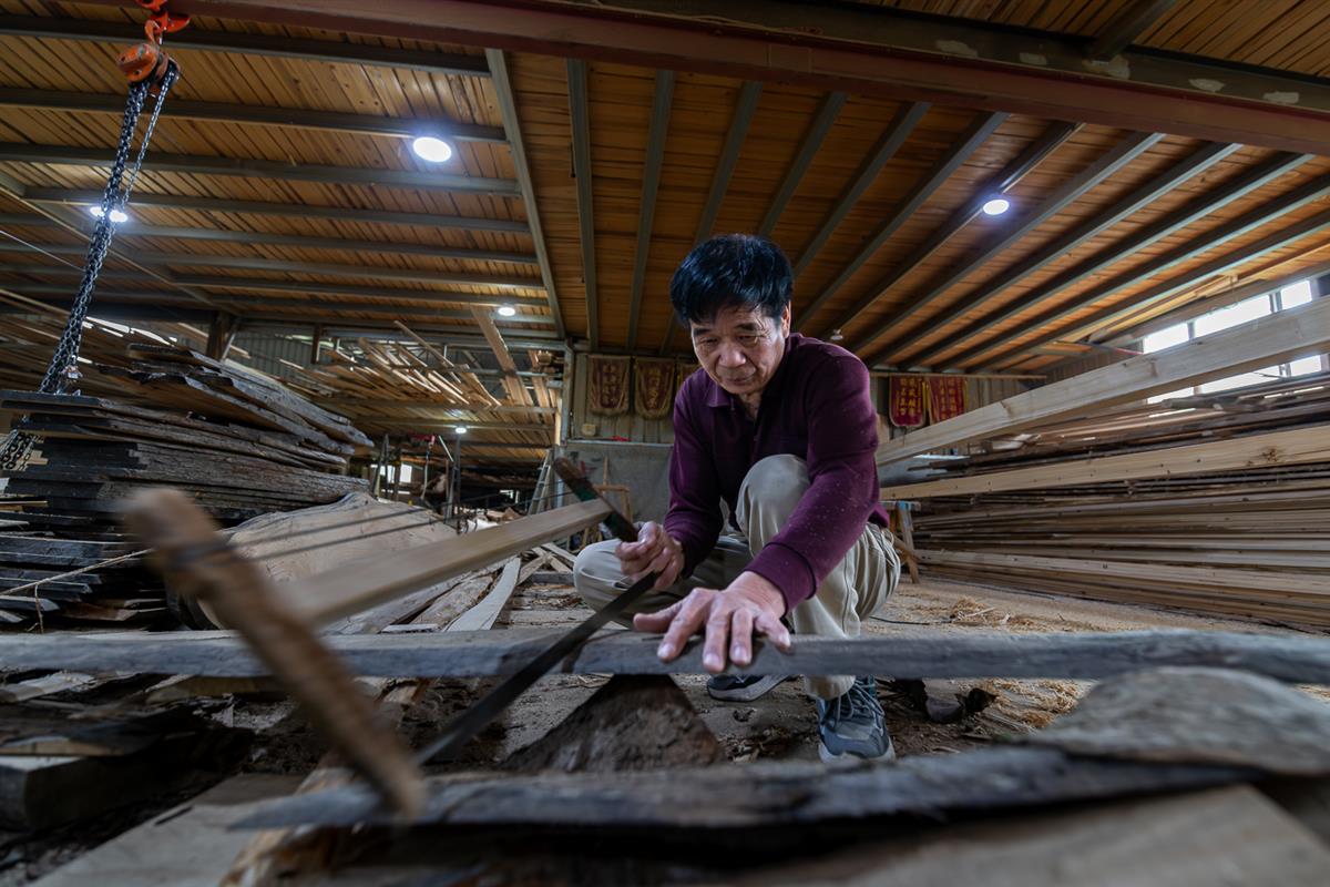 木堆为邻,锯子为伴,匠人在坊中俯身作业,每一次切割,都是与木头的对话,把平凡日子过成了匠心的注脚。