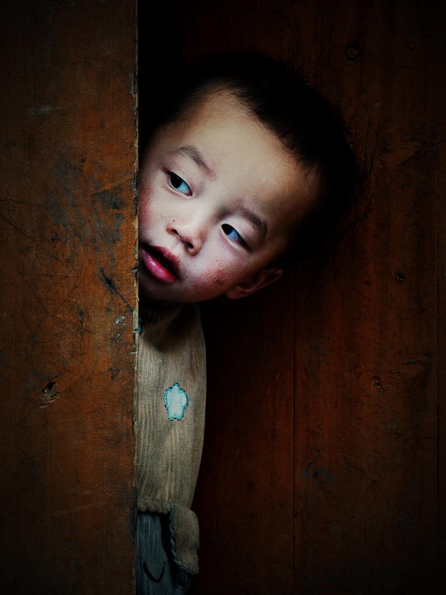 在大圩古镇采风期间,偶遇一孩子从大门间探头出来打量路过的我们,怯怯的样子,非常可爱。