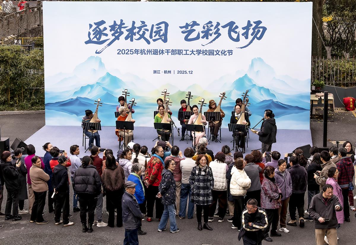 杭州退休干部职工大学的校园文化节上,学员们怀抱琵琶十指生花,弹拨间流淌出的不仅是千年古韵,更是那依旧滚烫的青春,引得台下银发观众喜动颜开,掌声如潮,满堂喝彩道尽了“夕阳正当红”的精彩。