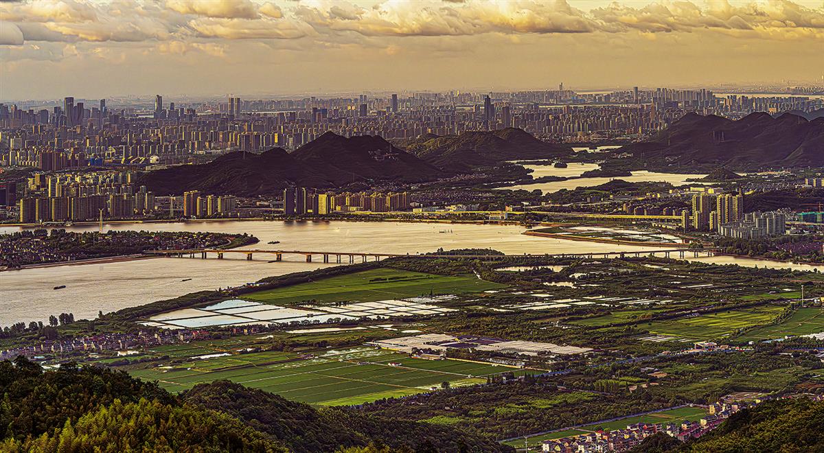 站在望江阁朝东望,眼前像铺开一幅流动的画。三江口是画的底色,润着水汽;湘湖像块翡翠,嵌在中间,把城市的硬朗柔化了几分;钱塘江在最上头,波光扯着萧山与杭州的楼群,让钢筋水泥也沾了些江风的清润。城与湖、江与岸,就这么挨着,倒像是天地把热闹与沉静,都揉进这一眼里了.